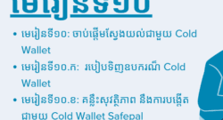 នៅក្នុងមេរៀនខាងក្រោមអ្នននឹងសិក្សាអំពី៖ មេរៀនទី១០: ចាប់ផ្ដើមស្វែងយល់ជាមួយ Cold Wallet, មេរៀនទី១០.ក: របៀបទិញឧបករណ៏ Cold Wallet, មេរៀនទី១០.ខ: គន្លឹះសុវត្ថិភាព នឹងការបង្តើតជាមួយ Cold Wallet Safepal, មេរៀនទី១០.គ: របៀបផ្ញើចេញនឹងទទួលចូល.