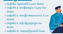 នៅក្នុងមេរៀនខាងក្រោមអ្នននឹងសិក្សាអំពី៖ មេរៀនទី៩: ស្វែងយល់ពី Crypto Wallet, មេរៀនទី៩.ក: ចាប់ផ្ដើមជាមួយ Crypto Hot Wallet, មេរៀនទី៩.ខ: ការបង្កើត Metamask & Trust Walletនឹងការរក្សាគន្លឹះសុវត្ថិភាព, មេរៀនទី៩.គ: របៀបផ្ញើឬទទួលក្នុង Hot Wallet, មេរៀនទី៩.ឃ: ការចូលប្រើប្រាស់លើ Dapp ដូចជា Pancakeswap ឬ Uniswap, មេរៀនទី៩.ង: ការទាញកាក់ចូល hot Wallet បន្ទាប់ពីអ្នកត្រេតលើ Dapp.