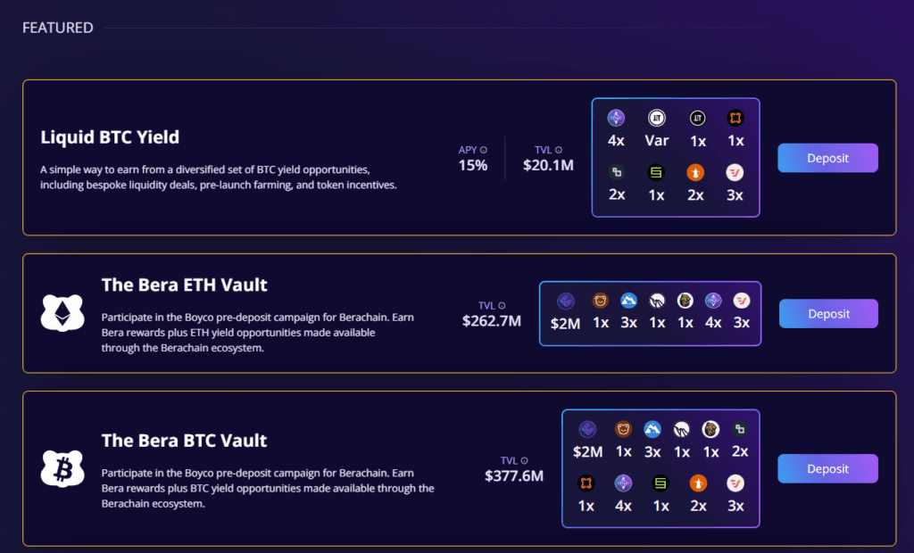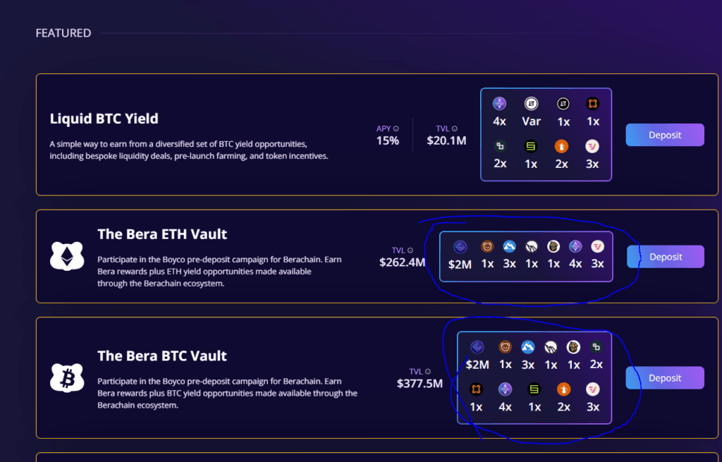 BOYCO គឺជាយុទ្ធសាស្រ្តទាក់ទាញទុនអោយធ្វើការដាក់លុយ Pre-Deposit លើ Blockchain របស់ខ្លួន។ដែលនេះជាយុទ្ធសាស្រ្តក្នុងការស្វែងរក liquidity មកលើ Blockchain មួយនេះមុននឹងចេញជា mainnet ផ្លូវការ។បើយោងតាម Chain Catcher, ចំនួន TVL នៃការដាក់លុយចូលក្នុង BOYCO របស់ Berachain មានរហូតដល់ទៅជាង $2.2B ដែលជាចំនួនដ៏ច្រើនសម្រាប់ blockchain ដែលមិនទាន់ទាំងចេញរូបរាងច្បាស់លាស់ផង។