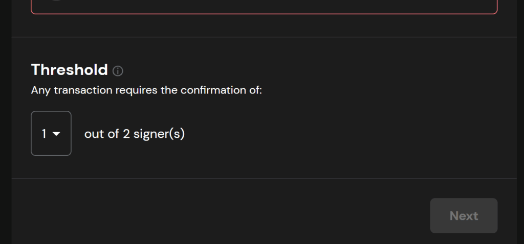 - Threshold: គឺអ្នកអាចជ្រើសរើស១ ២ ឬច្រើនជាងនឹង។ក្នុងនេះមានន័យថារាល់លើប្រតិបត្តិការណ៏នីមួយៗត្រូវការអ្នក Sign ពី wallet ប៉ុន្មាននាក់?